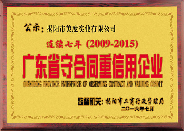 连续7年(2009-2015)广东省守合同重信用企业