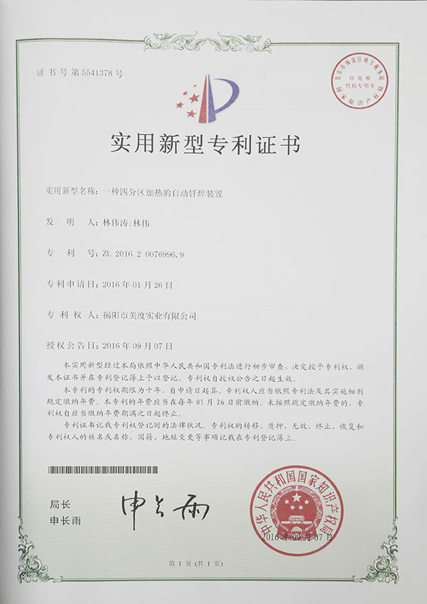 当前位置 > 关于美度(专利证书) >