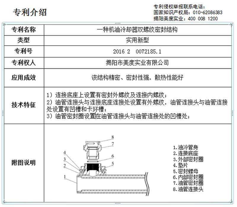 一种机油冷却器双螺纹密封结构